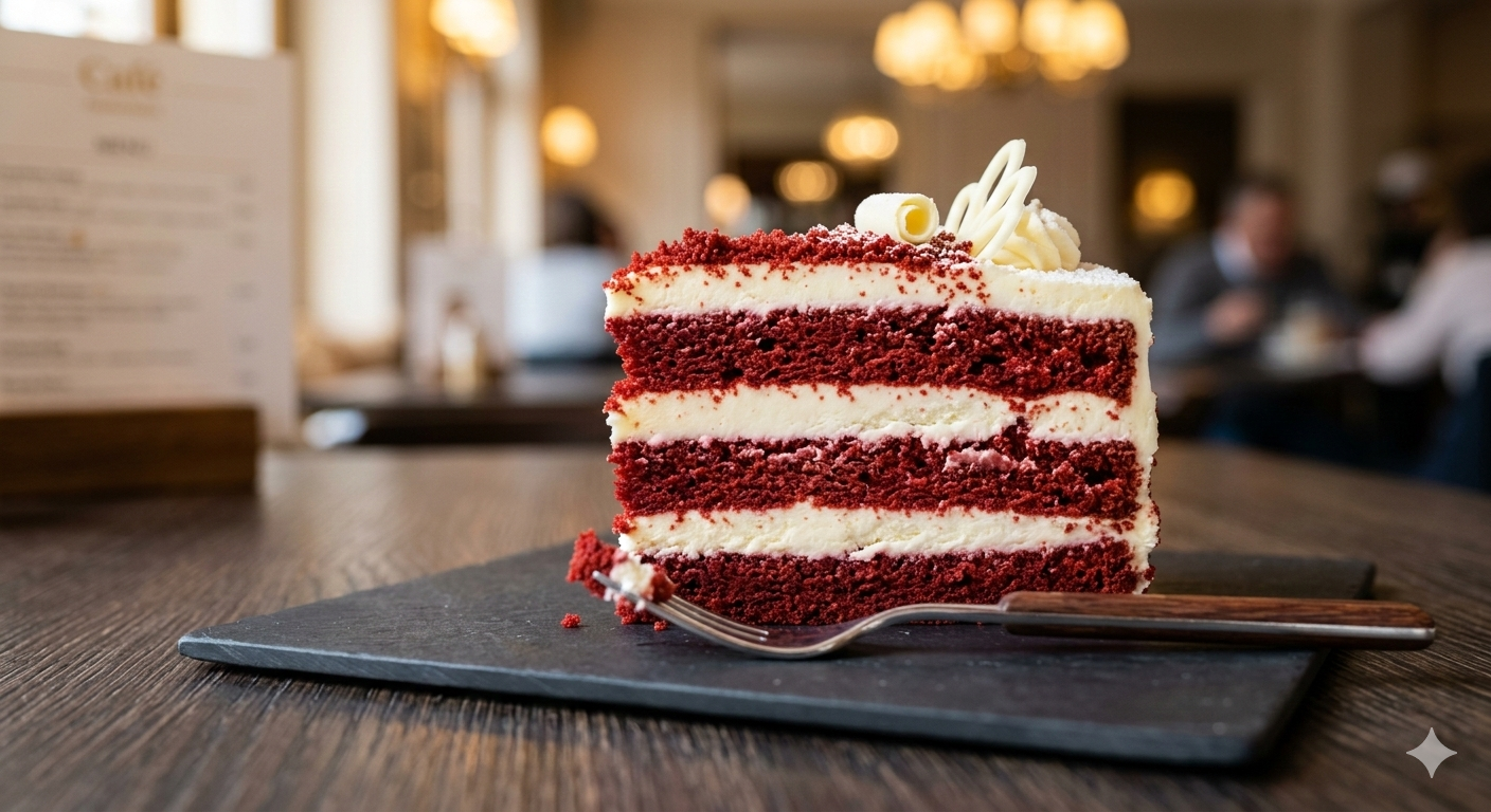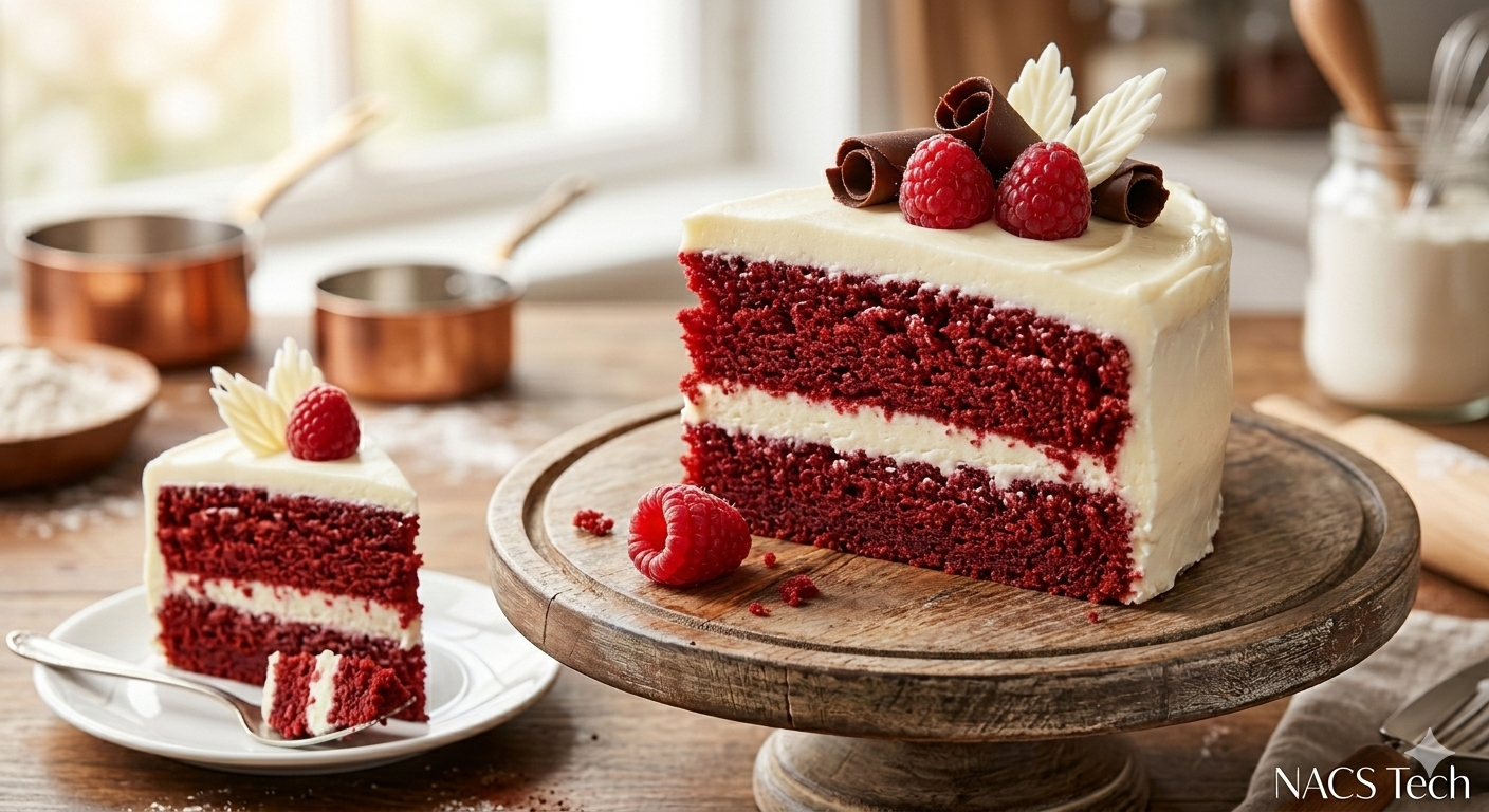 Velvety Texture: Indulge in a strikingly vibrant red cocoa sponge that is incredibly soft, light, and moist in every bite.